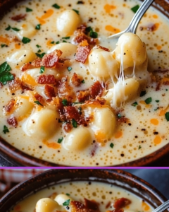 Warm, creamy, and oh-so comforting — this Bacon Cheddar Gnocchi Soup is the ultimate cozy dish you’ll want to make again and again. 🤍 Soft, pillowy gnocchi swim in a rich cheddar cheese broth with crispy bacon, tender veggies, and just the right amount of creaminess. It’s hearty enough for a main course and perfect for chilly nights, family dinners, or when you’re craving restaurant-style comfort food at home.